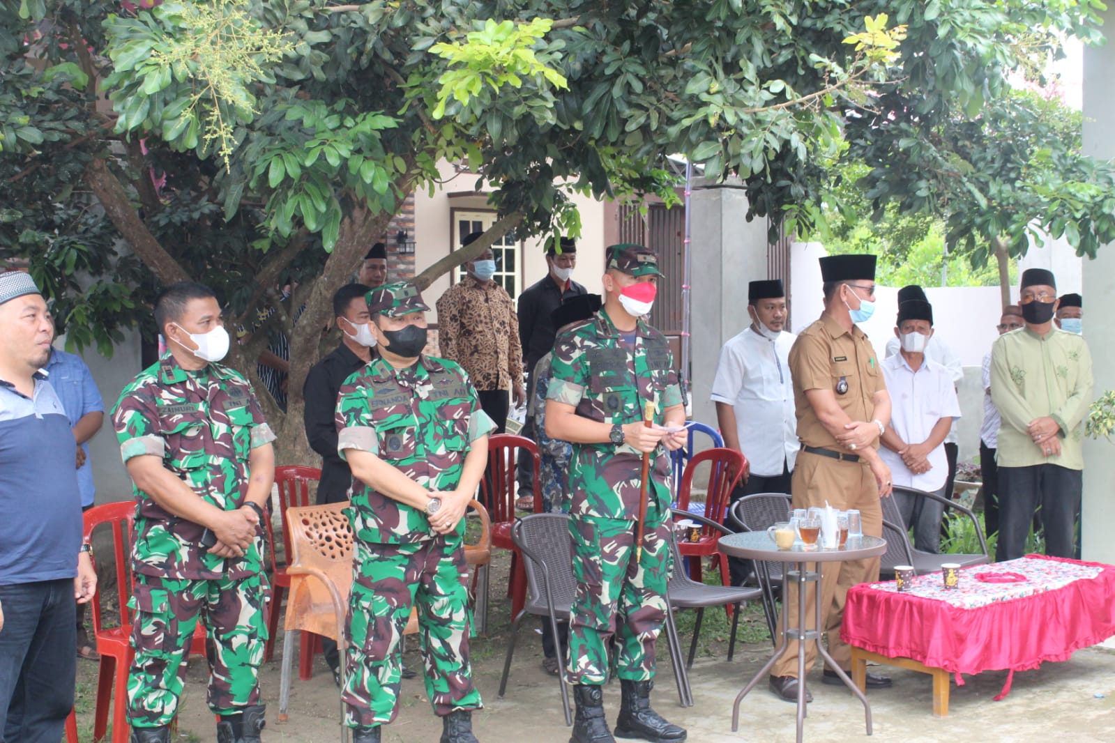 Komandan Komando Distrik (Dandim) 0402/OKI, Letkol Inf Hendra Saputra, S.Sos.,M.M.,M.I.Pol, menyambangi rumah duka anggota Keluarga besar Kodim 0402/OKI, cucu dari PNS Sofyan di Kelurahan Jua-Jua Kota Kayuagung, Senin (21/02/2022).