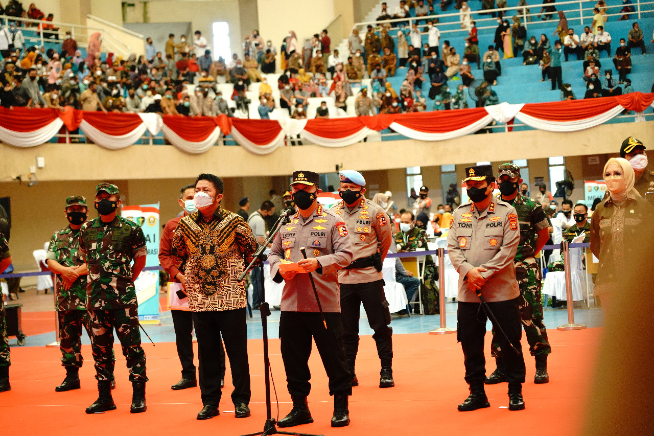 Dalam agenda kunjungan kerja kali ini, Kapolri Jenderal Pol Listyo Sigit Prabowo melakukan peninjauan Vaksinasi Massal yang diselenggarakan di Gedung Olahraga (GOR) Biduk Kajang, Kayu Agung, Kabupaten Ogan Komering Ilir (OKI) Sumsel, Kamis (24/2/2022).