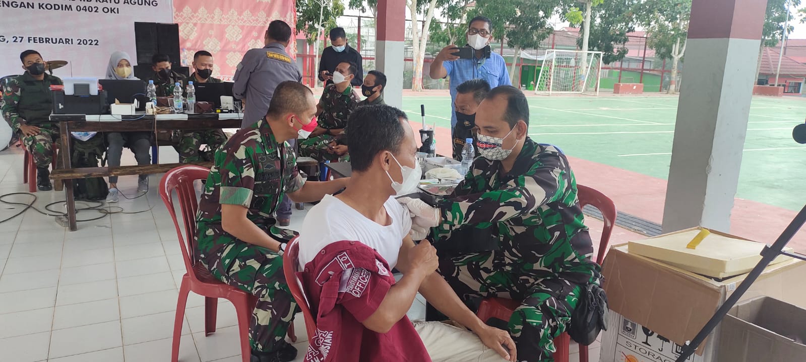 OKI, Kodim 0402/ OKI terus gencar melakukan upaya percepatan vaksinasi guna membantu pemerintah dalam mempersempit penyebaran covid-19, sehingga Indonesia bisa terbebas dari masa pandemi.
