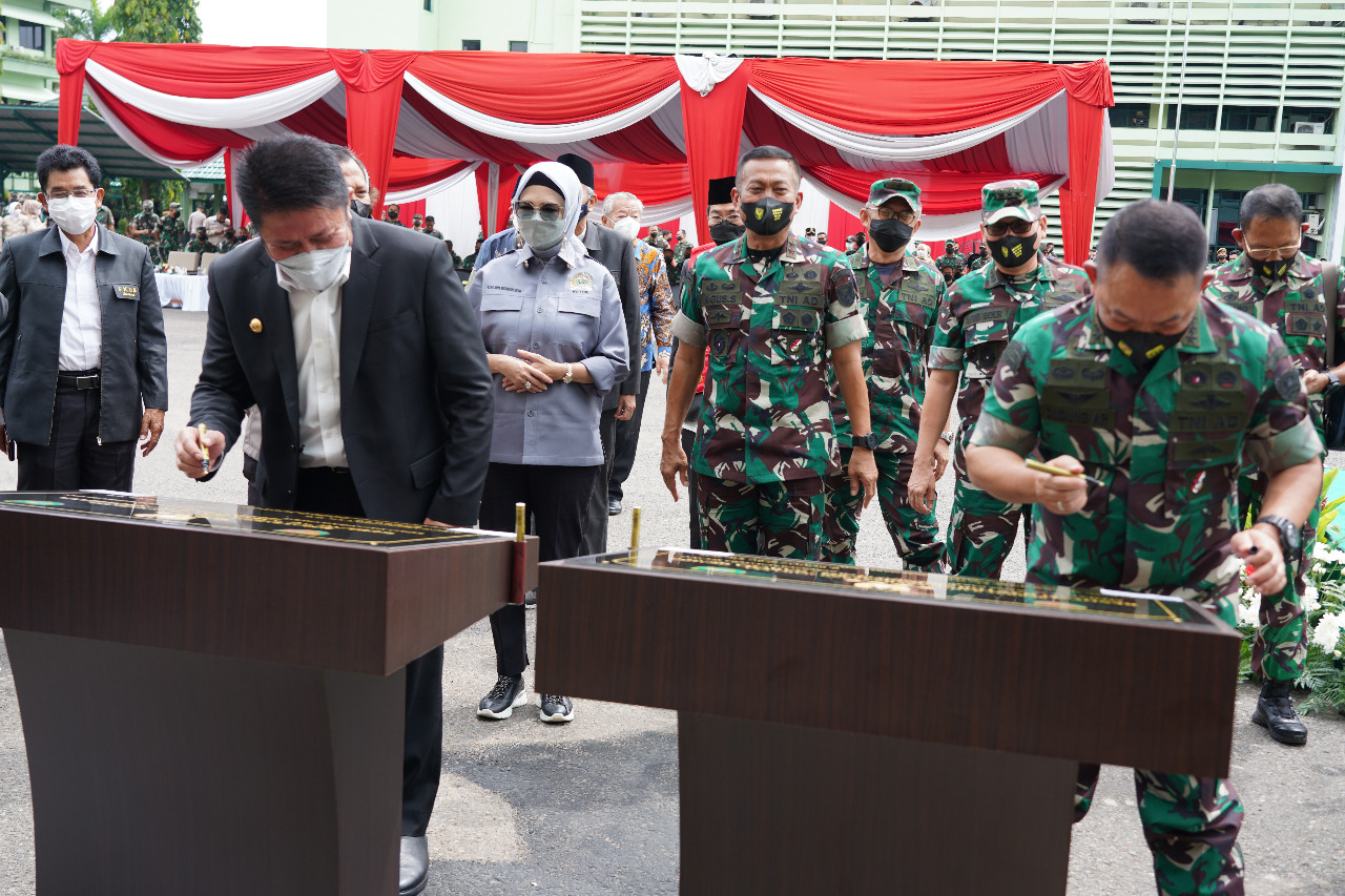 Kepala Staf Angkatan Darat (Kasad) Jenderal TNI Dudung Abdurachman resmi menandatangani prasasti sebagai tanda selesainya Pembangunan Gedung C Makodam II/Swj dan Makorem 044/Gapo, Selasa (8/3/2022) bertempat di Lapangan Apel Makodam II/Swj Jln. Jenderal Sudirman KM. 2,5 Palembang.