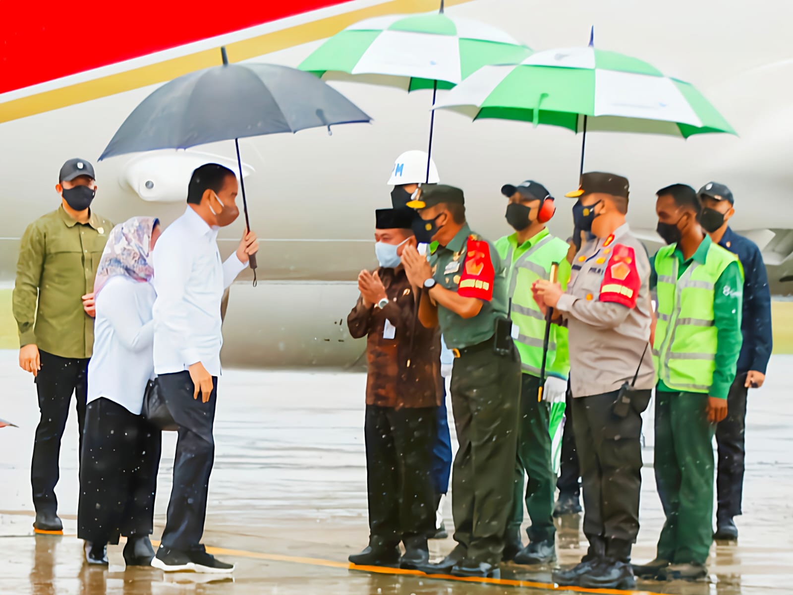 Berangkat dari Bandara Udara Halim Perdana Kusuma Jakarta, Presiden RI Joko Widodo didampingi Ibu Negara Iriana Joko Widodo beserta rombongan terbatas dengan menggunakan Pesawat Khusus Kepresidenan Indonesia - 1, tiba di Bandara Sultan Thaha Saifuddin Jambi, disambut langsung oleh Pangdam II/Swj Mayjen TNI Agus Suhardi, Gubernur Jambi dan Kapolda Jambi beserta unsur Forkopimda Provinsi Jambi.