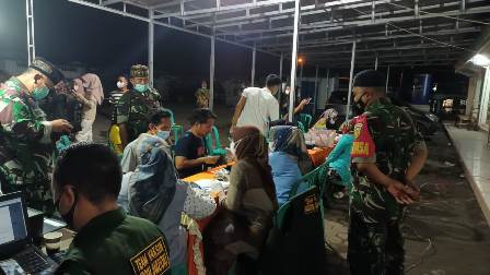Kodim 0402/OKI bersama Dinkes dan BPBD Ogan Ilir Gelar Vaksinasi Malam Ramadhan.