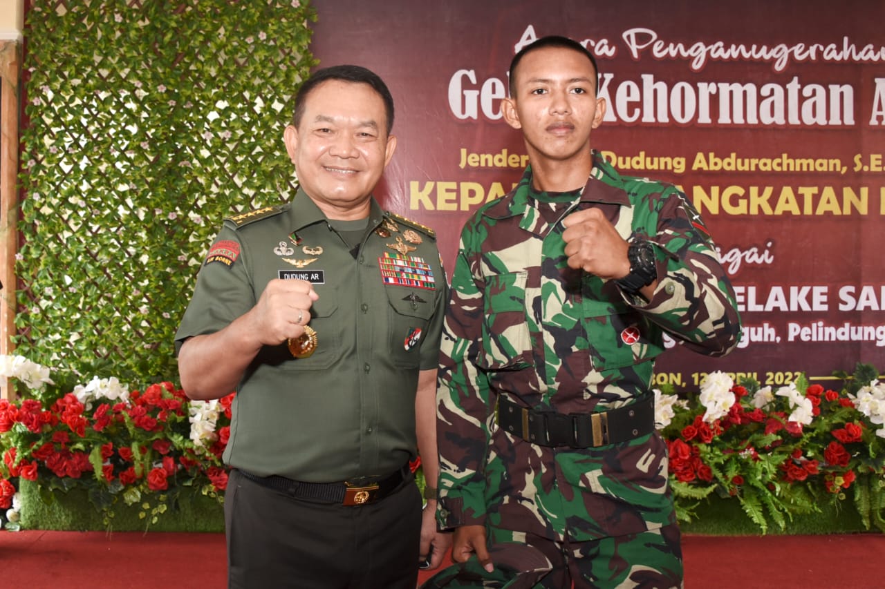 JAKARTA, tniad.mil.id- Kepala Staf Angkatan Darat (KASAD) Jenderal TNI Dudung Abdurachman, S.E., M.M., mewujudkan mimpi putra daerah Patimura bernama Henz Songjanan denganm memanggil kembali sebagai Prajurit Siswa Secata PK Rindam XVI/Pattimura untuk selanjutnya dilantik sebagai prajurit TNI AD.