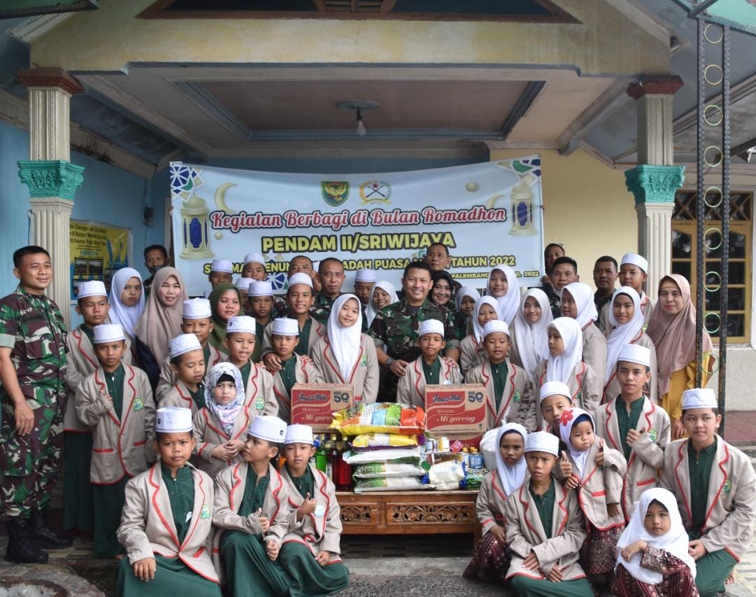 Kepala Penerangan Kodam II/Sriwijaya, Letnan Kolonel Kav Rohyat Happy Ariyanto beserta Para Kasi Pendam II/Swj berkunjung ke salah satu Lembaga Kesejahteraan Masyarakat di Kota Palembang, yakni Panti Asuhan Peduli Anak Yatim, Sabtu (23/4/2022) siang.