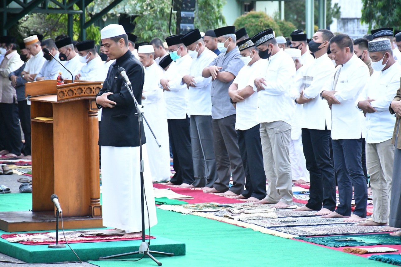 Pangdam II/Swj Mayjen TNI Agus Suhardi dan Ny. Shinta Agus Suhardi melaksanakan Sholat Idul Adha Bersama, Minggu (10/7/2022), bertempat di Lapangan Apel Makodam II/Swj Jalan Jenderal Sudirman KM. 2,5 Palembang.