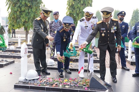 Palembang, (Pendam II/Sriwijaya) Sebagai wujud penghormatan dan penghargaan terhadap para Pahlawan Kusuma Bangsa, Kodam II/Sriwijaya, Lanal Palembang dan Lanud SMH Palembang, menggelar Upacara Ziarah Nasional di Taman Makam Pahlawan (TMP) Ksatria Ksetra Siguntang (KKS) Jl. Jenderal Sudirman KM. 3,5 Palembang, Rabu (04/10/2023) pukul. 07.00 WIB.